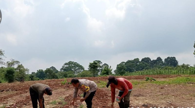 Bhabinkamtibmas Polsek Pabuaran Polresta Serkot Terjun Langsung Dampingi Petani Tanam Jagung Hibrida di Gunungsari