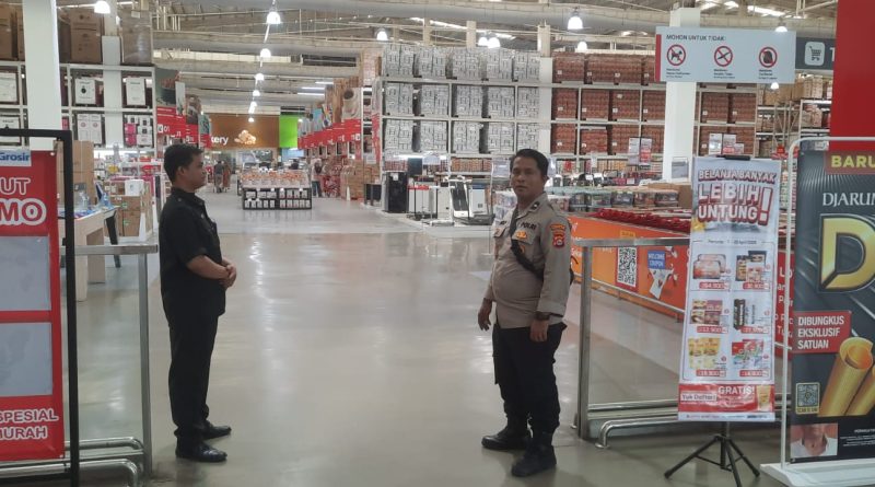 Jaga Kamtibmas Tetap Kondusif, Personel Polsek Serang Polresta Serkot Patroli di Lotte Mart Kota Serang