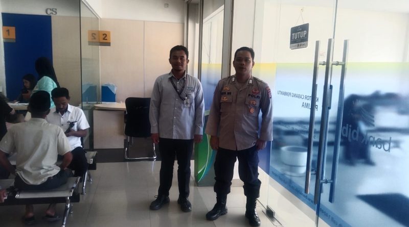 POLRESTA SERKOT_Membangun kemitraan dan Memberikan rasa aman dan nyaman personel Polsek Curug Polresta Serkot Polda Banten Bripka Adin gelar Sambang dan patroli objek Vital bertempat di Bank BJB Kantor kas KP3B Curug, Kota Serang.