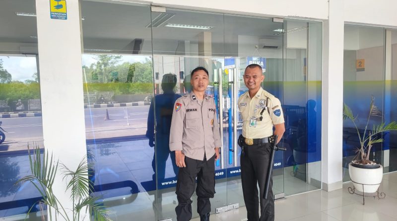 POLRESTA SERKOT_Membangun kemitraan dan Memberikan rasa aman dan nyaman personel Polsek Curug Polresta Serkot Polda Banten Aipda Irwan gelar Sambang dan patroli objek Vital bertempat di Bank BJB Kantor kas KP3B Curug, Kota Serang.