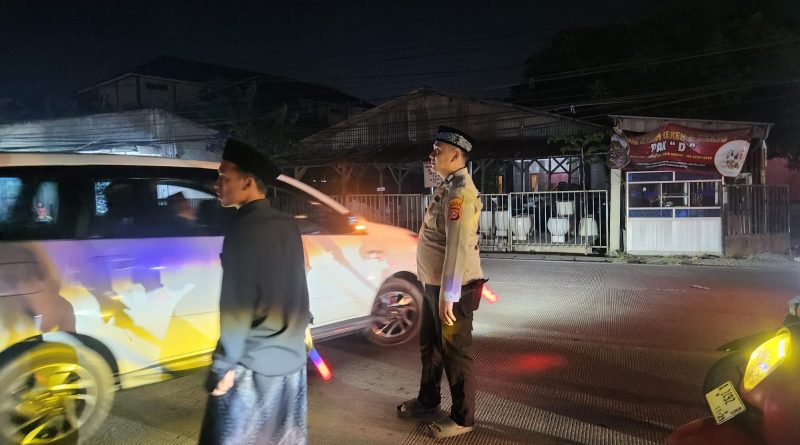 Personel Polsek Kramatwatu Polresta Serkot melaksanakan pengaturan arus lalu lintas